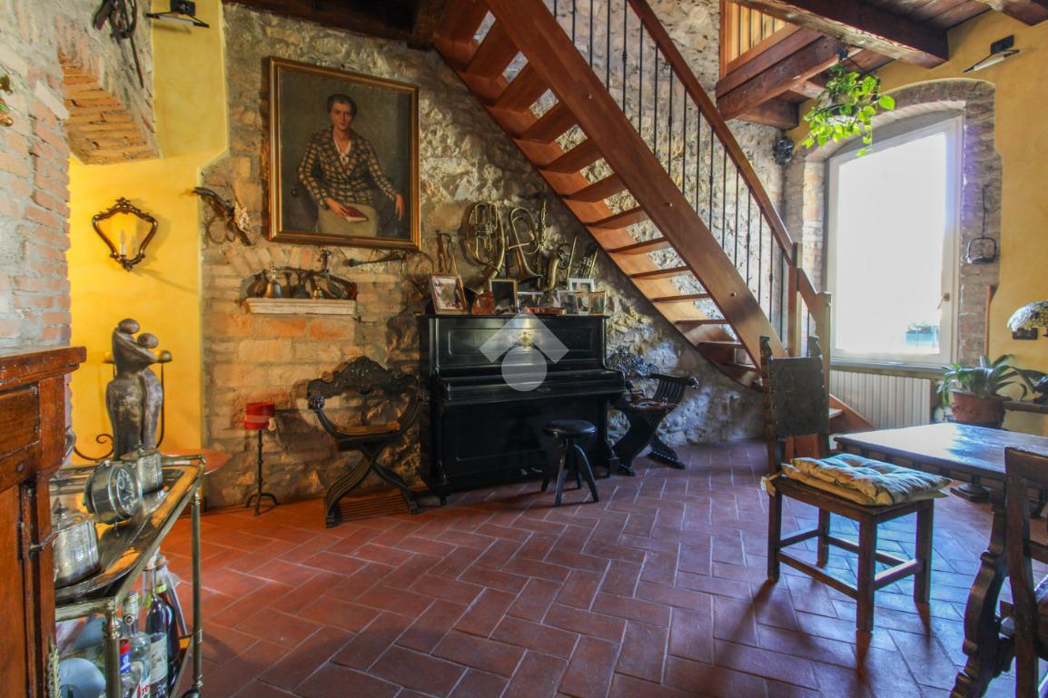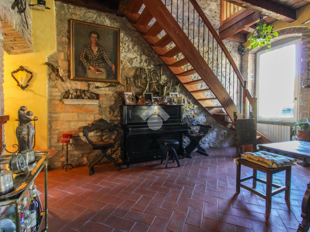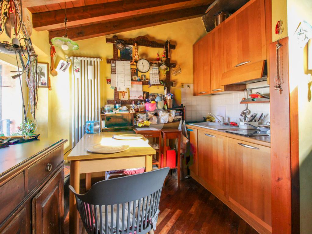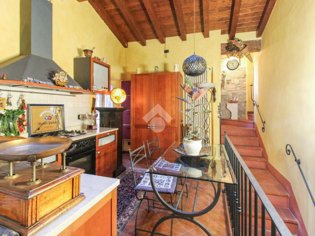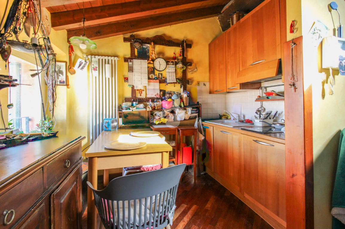 Al terzo piano si sviluppa una seconda zona giorno open space con angolo cottura, facilmente trasformabile in una camera aggiuntiva, ideale come stanza per gli ospiti, studio creativo o angolo giochi per i più piccoli. Da qui si accede a un balconcino con scorcio sul lago, dove godersi il panorama e la tranquillità del borgo sottostante.