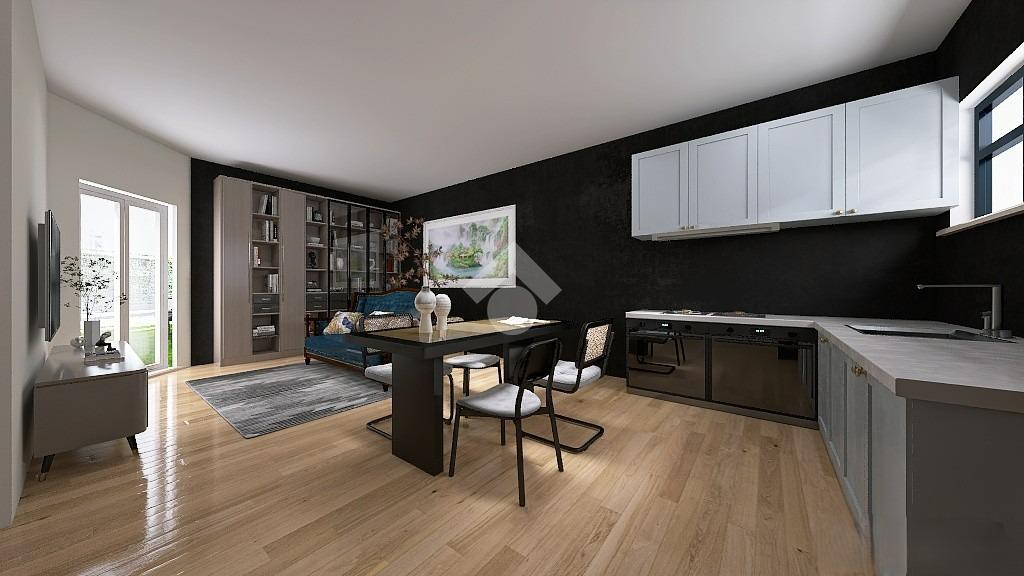 Al piano terra, la zona giorno è composta da un soggiorno accogliente con angolo cottura, ideale per momenti conviviali e familiari, accompagnata da un bagno completo con doccia e sanitari in ceramica, curato nei dettagli e funzionale. Entrambi i lati dell'abitazione si affacciano su giardini privati, perfetti per chi desidera godersi il verde e la tranquillità, o per chi possiede animali domestici.