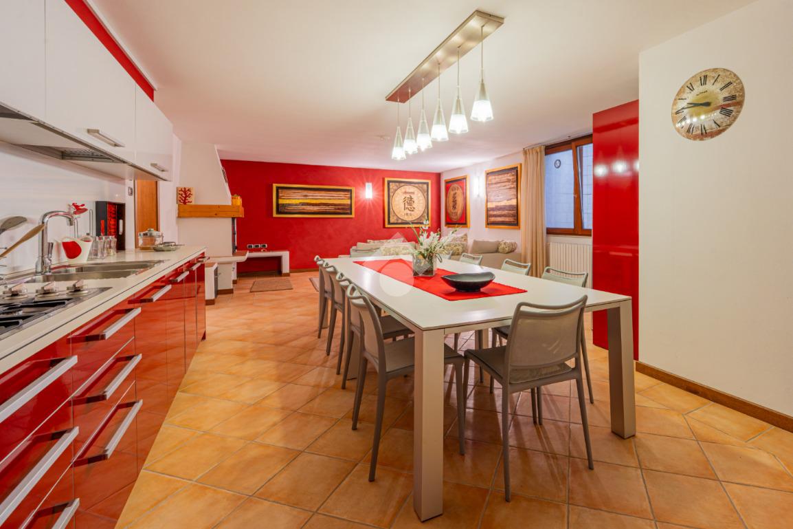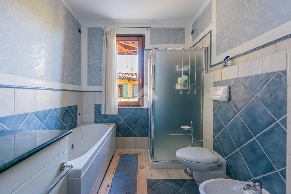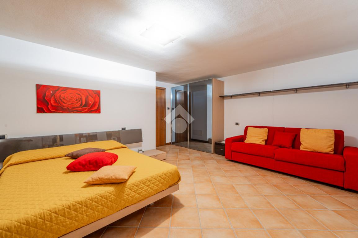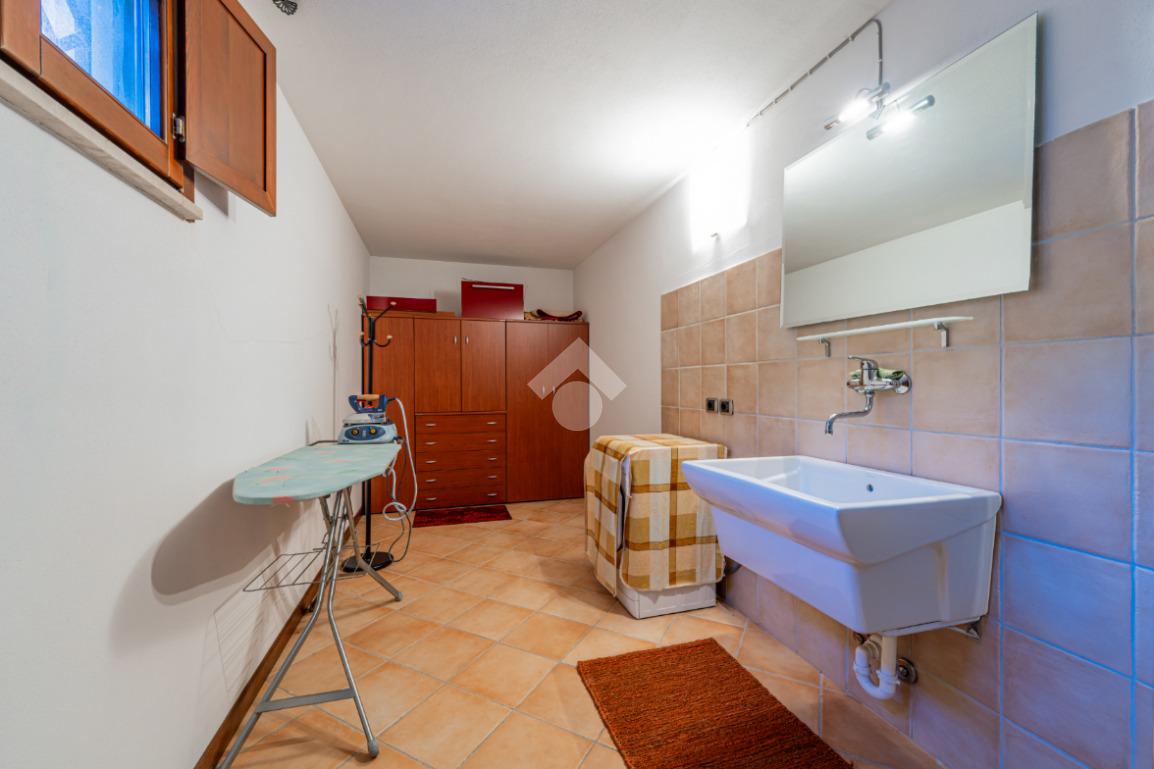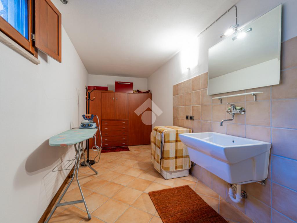 Scendendo al piano seminterrato tramite la scala interna si scopre una vasta taverna con cucina abitabile e soggiorno arricchito da camino, uno spazio versatile ideale per ricevimenti, momenti conviviali o attività ricreative. Il livello comprende inoltre due locali polifunzionali, ideali come lavanderia, palestra, studio o camere aggiuntive, un bagno di servizio e un ampio ripostiglio estremamente utile. Dal seminterrato si accede direttamente al garage doppio con basculante automatica, comodo e capiente.