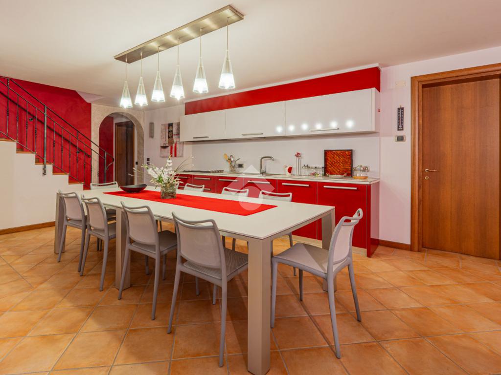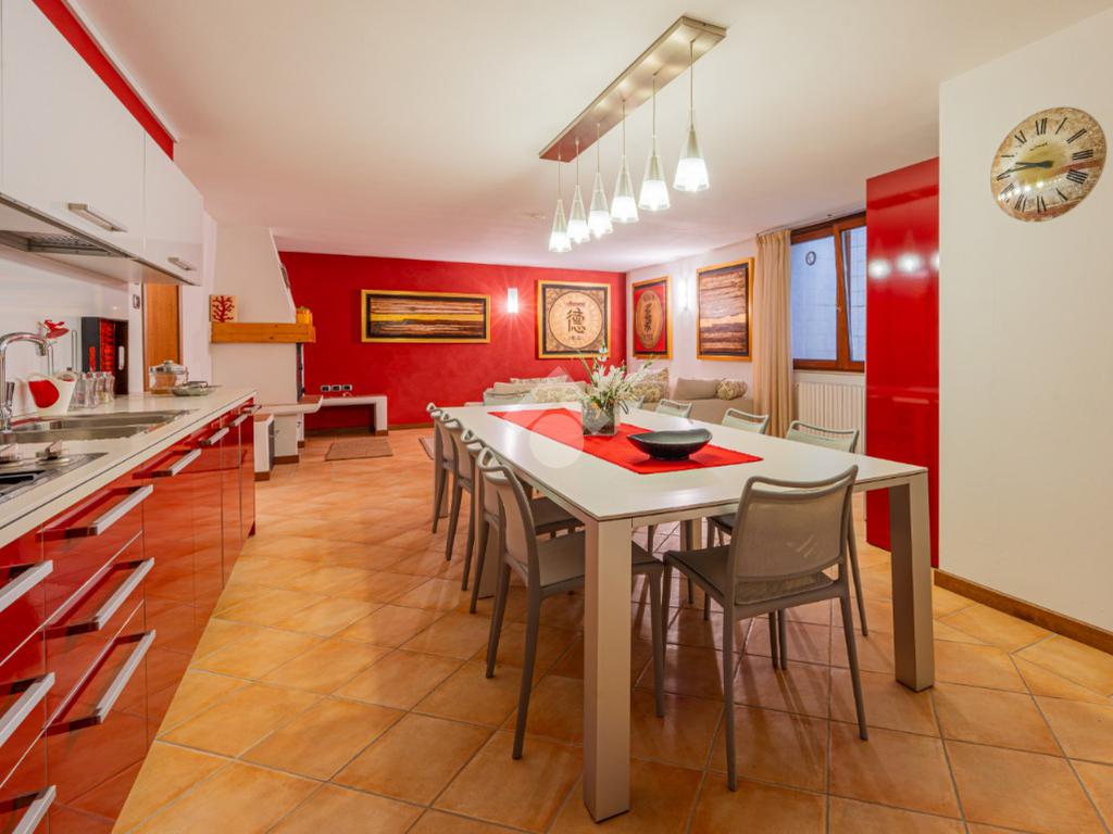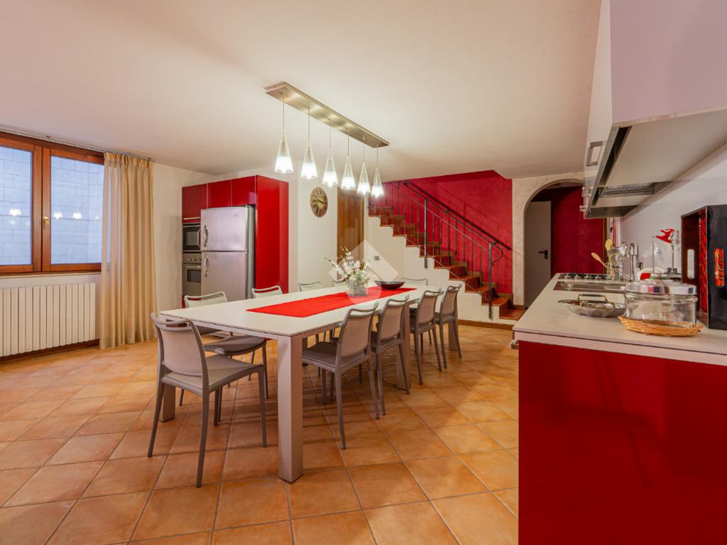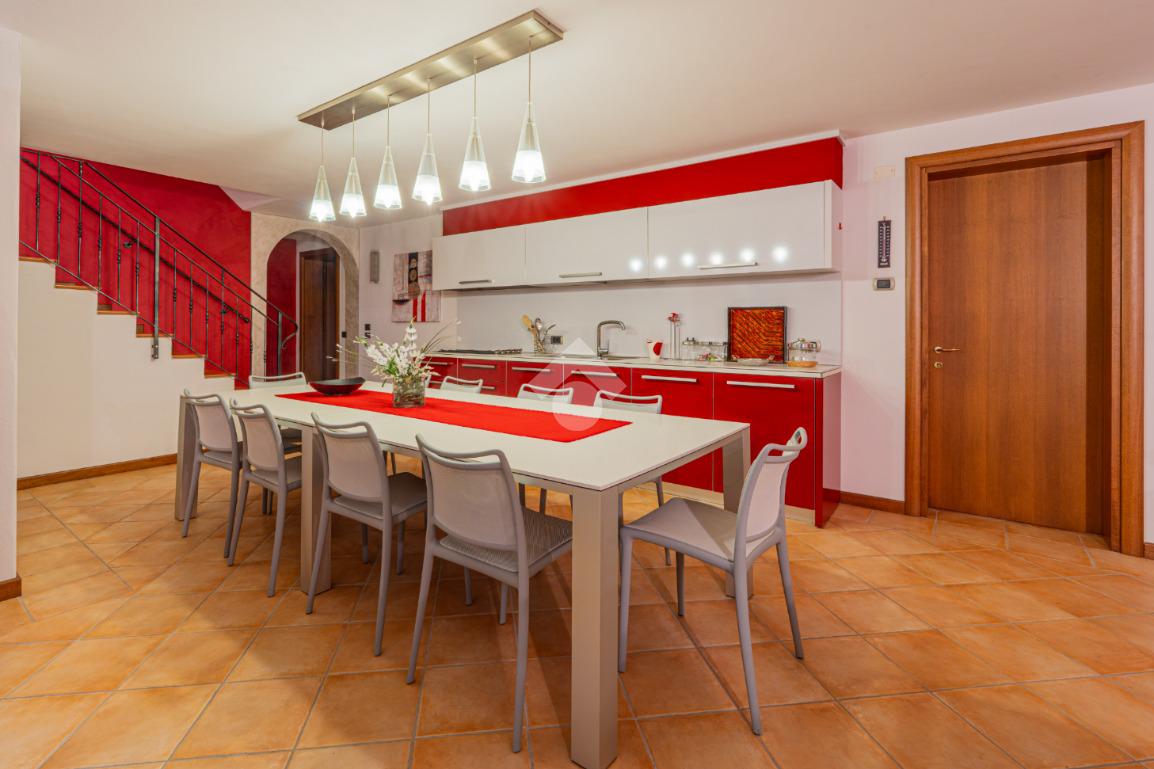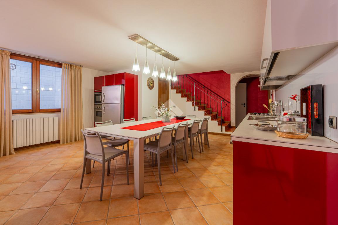 Scendendo al piano seminterrato tramite la scala interna si scopre una vasta taverna con cucina abitabile e soggiorno arricchito da camino, uno spazio versatile ideale per ricevimenti, momenti conviviali o attività ricreative. Il livello comprende inoltre due locali polifunzionali, ideali come lavanderia, palestra, studio o camere aggiuntive, un bagno di servizio e un ampio ripostiglio estremamente utile. Dal seminterrato si accede direttamente al garage doppio con basculante automatica, comodo e capiente.