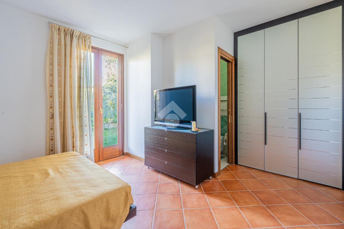 Proseguendo verso la zona notte si accede a due camere matrimoniali molto spaziose, entrambe curate nei minimi dettagli. Uno degli aspetti più affascinanti è la presenza di una porta-finestra che conduce direttamente al giardino, offrendo un accesso privilegiato all’area verde che circonda l’abitazione e regalando al risveglio una splendida sensazione di apertura e libertà. Una delle camere dispone inoltre di un elegante bagno privato, mentre la cabina armadio aggiunge ulteriore comodità e raffinatezza. Un secondo bagno moderno completa il piano.